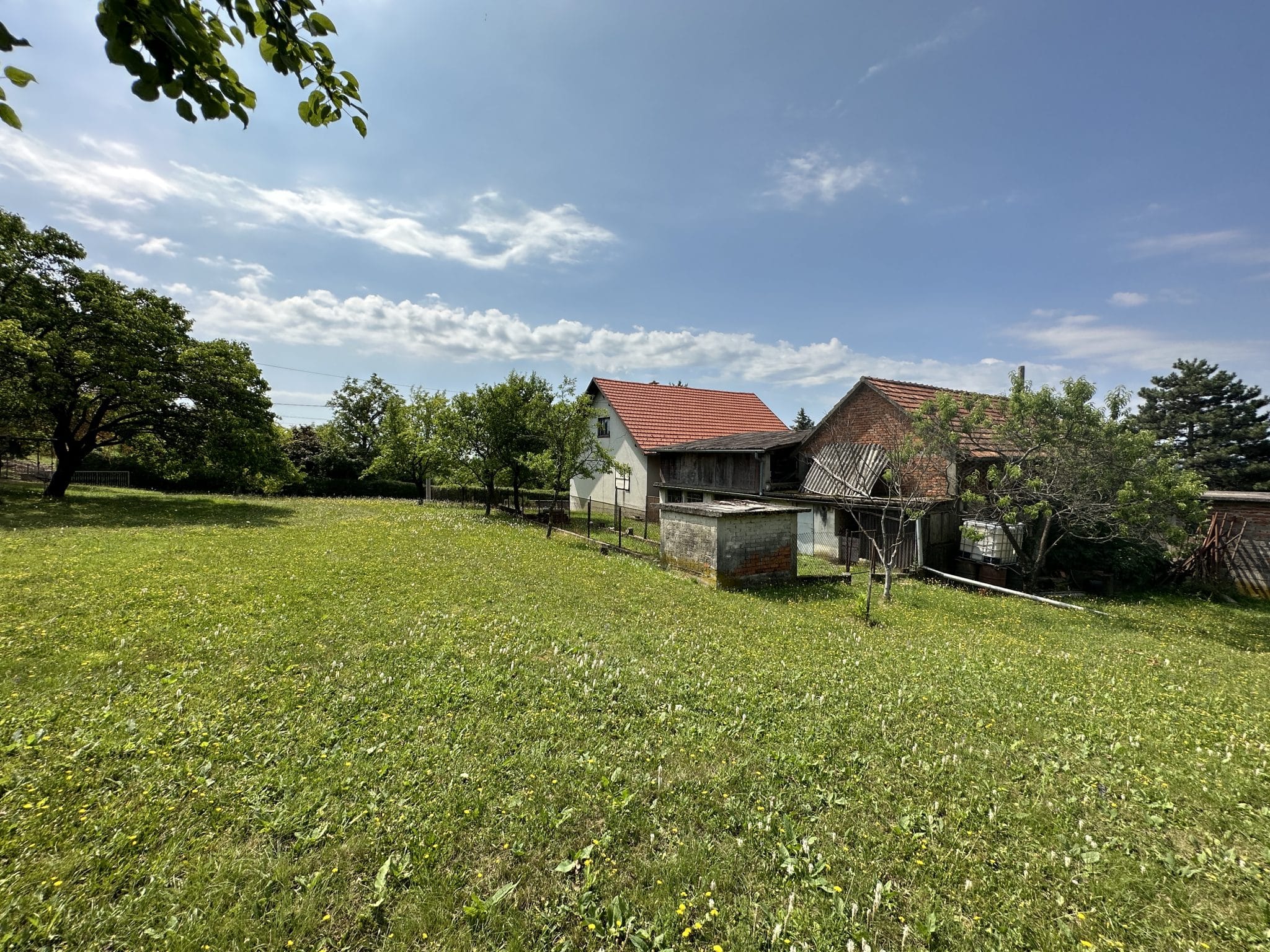 Na zemljištu se nalazi kuća sa dvije etaže ukupne stambene površine cca 138 m2 i gospodarske zgrade od 109 m2 sa garažom od 45 m2. Kuća nije useljiva i može se renovirati ili rušiti.